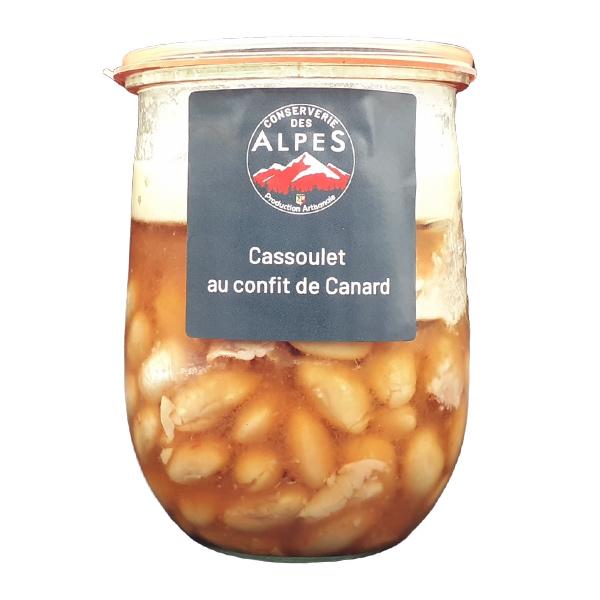 Composition : morceaux de canard confit, 2 saucisses fumées*, poitrine de porc, haricots blancs, tomates, eau, sel de Guérande, arômates