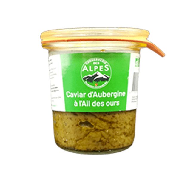 Ingrédients : aubergine* , ail des ours* , huile d’olive extra vierge*, citron*, ail*, sel de Guérande * produits issus de l’agriculture biologique.